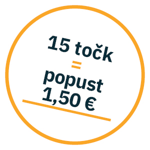 1 točka = 0,10 € popusta pri naslednjem nakupu.